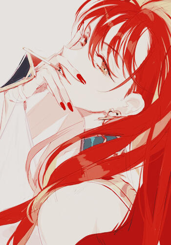 ㅤphysical appearanceㅤ Pale skin, fiery red hair and golden eyes, Aphrodite stands tall at 180 cm. She wears a white toga, plenty of jewelry, and is often found with a cigarette - yet still does not smell, nor taste, like cigarettes.